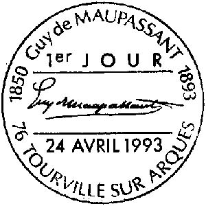 Турвиль сюр Арко. Первый день марки М2948. Автограф Мопассана.