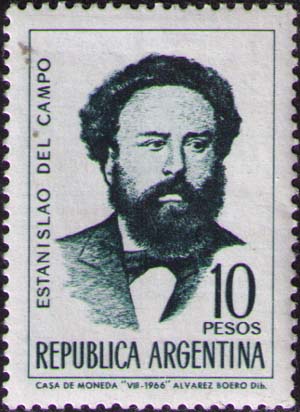 Аргентина, 1966, 10 P. П. глубокая. 13 (1/2). черно-сине-зеленая