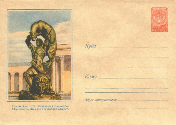 Грузинская ССР. Цхалтубо. Скульптура «Витязь в тигровой шкуре».