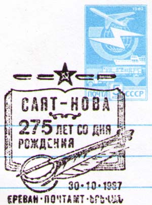 Ереван. 275 лет со дня рождения Саят Нова. открытая книга, гусиное перо, дудук — армянский музыкальный инструмент